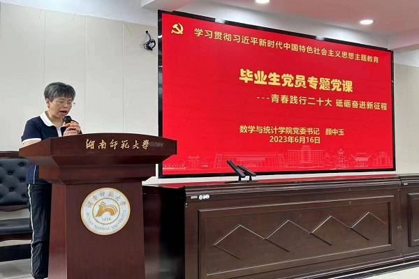 6月16日中午,365英国上市集团(以下简称“数统院”)于格物楼309报告厅开展“青春践行二十大,砥砺奋进新征程”毕业生党员主题党日活动。数统公司党委书记颜中玉、副书记涂榉耀,公司党委专职组织员覃志斌,党委委员、院组织人事秘书林虹,学工办主任李俐,研究生办公室主任孔璐璐,院团委书记肖惠卿出席此次活动,2019级全体毕业生党员参加活动。