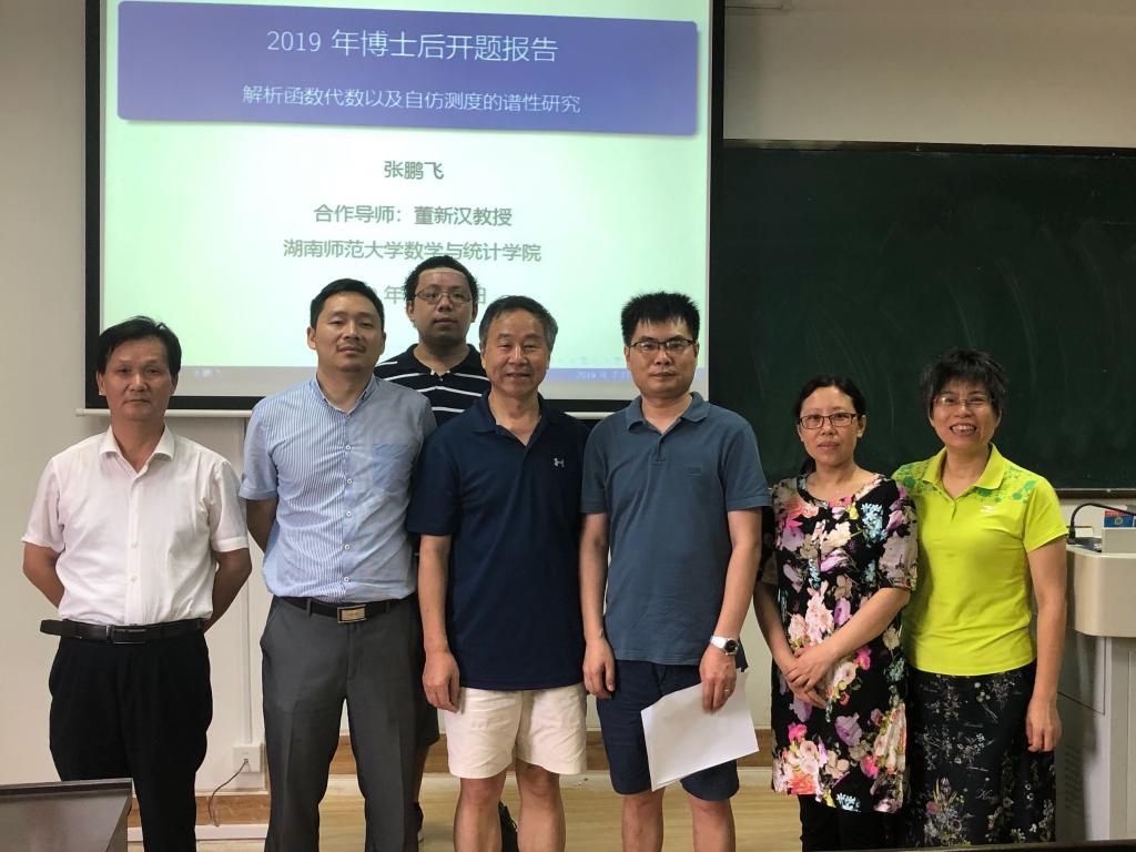 会上,李利平教授首先介绍了出席本次报告会的各位专家。合作导师董新汉教授介绍了张鹏飞博士后的基本情况。随后,张鹏飞博士从解析函数代数、自仿测度的谱性和分形Hardy空间三个方面就选题意义、前期研究基础及研究工作计划进行了较系统地介绍,并回答了专家组的提问。专家组成员经过认真评议,一致认为张鹏飞博士的研究方案可行,同意开题。