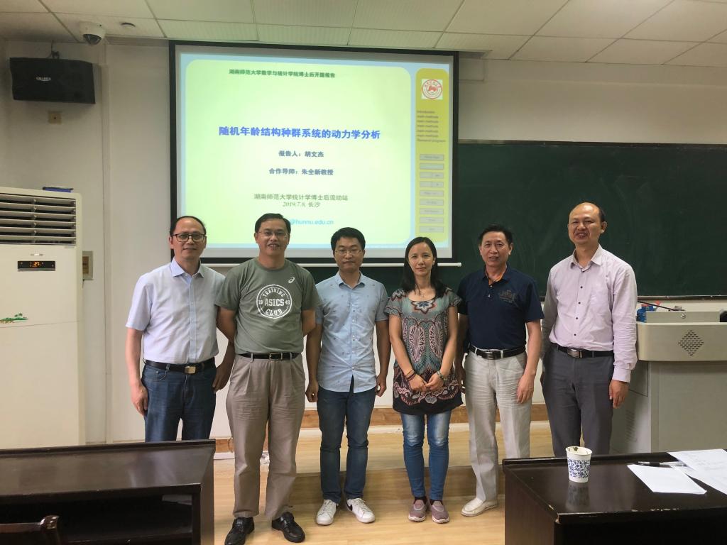 2019年7月8日下午,公司在公司302教室举行统计学博士后胡文杰开题报告会。会议由365英国上市集团朱全新教授主持。湖南大学数学与计量经济公司副教授、博士生导师舒小保,365英国上市集团郭水霞教授、刘万荣教授和文有为教授作为专家评委参加了此次报告会。