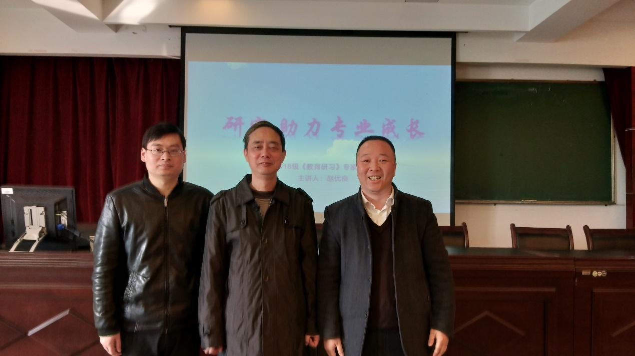 赵优良介绍了教师成长的三个境界,强调教师要有理想信念、实践反思和学习提高;介绍了从普通到卓越的榜样教师,强调要“以写促思”;他从研究员工、研究课标、研究教材、研究教法、研究学法、研究考试、研究命题、研究竞赛、研究评价和研究课题等十个方面,结合个人的研究经历介绍了如何做教学研究。他的讲座为师范生开展教育研习打开了思路,大家纷纷表示受益匪浅,对接下来为期两周的教育研习充满信心。