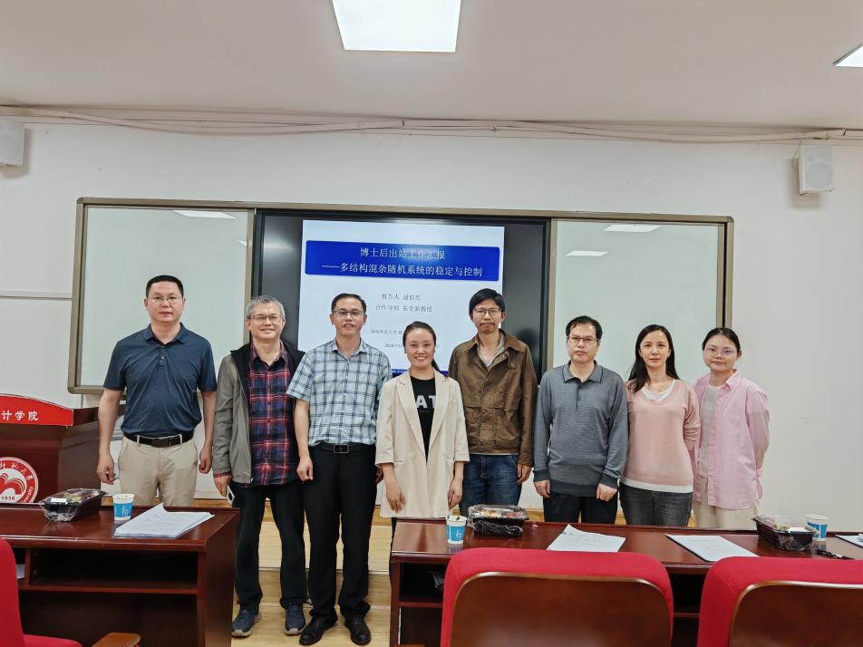 会上,朱全新教授首先介绍了出席本次中期及出站考核答辩会的各位专家与参会领导,然后介绍了陆尧和逯伯亮博士后的基本情况。随后,陆尧博士后针对有色噪声过程驱动的随机非线性系统的稳定与控制问题,从博士后研究课题的现实与理论意义、研究内容、研究进展以及研究成果行了较系统地汇报,并回答了专家组的提问。然后,逯伯亮博士后汇报进站以来的研究情况,主要讨论了研究多结构混杂高度非线性中立随机时滞系统的反馈控制问题,同时还介绍了关于高度非线性多结构混杂随机泛函系统指数稳定性问题的研究。最后,评审专家对陆尧博士后的中期考核和逯伯亮博士后在站期间取得的业绩成果和工作汇报进行了评估并给予了充分的肯定,对其研究工作提出了建设性意见和建议,最终经评审组考核,陆尧博士后通过中期考核,逯伯亮博士后顺利出站。