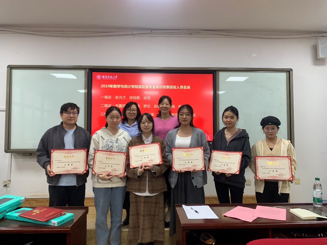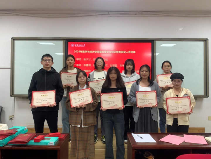 陈君副经理宣读本次实验室安全知识竞赛获奖人员名单,对获得表彰的个人表示诚挚的祝贺,并呼吁全体同学以他们为榜样,不断深化对实验室安全的认识,共同营造一个和谐安全的实验室氛围。随后,副经理陈君、计算与随机数学教育部重点实验室专职副主任刘亚琴为获奖个人颁发荣誉证书和奖品。