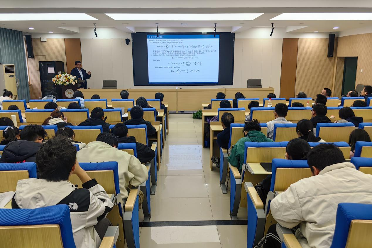 报告中,田野从费马的无穷下降法、同余数问题及同余数的BSD猜想等引入L-函数,从微积分的诞生重塑数学格局谈起,通过某些关键数学问题讲述了L-函数理论的起源,详细阐述欧拉提出“和函数”和黎曼得出素数定理与黎曼假设的过程,并详述了L-函数的证明推广进程。为帮助同学们更好地理解和运用,田野着重讲解椭圆曲线的L-函数与BSD猜想。