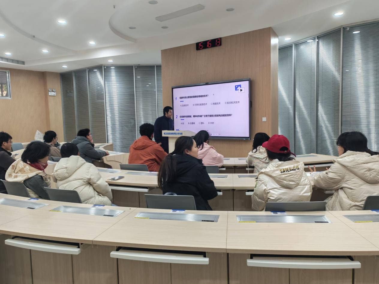 此次活动分为两个环节展开。首先,讲解员从全球气候变化的严峻现状切入,阐述了温室气体的大量排放导致全球平均气温持续上升所带来的种种危害。其中,CO2作为主要的温室气体,其过量排放问题尤为突出。因此,降低CO2的排放已成为全球刻不容缓的紧迫任务。在当前形势下,利用低碳科技改变现状是势在必行且最优的手段。紧接着,讲解员深入浅出地介绍了低碳科技的内涵,并为增强同学们的理解,设置了“双碳小知识”有奖问答环节;此外,结合实际案例,展示了低碳技术在交通、建筑、农业等领域的应用,让同学们从实际问题中认识到低碳技术在降低CO2中的关键作用。