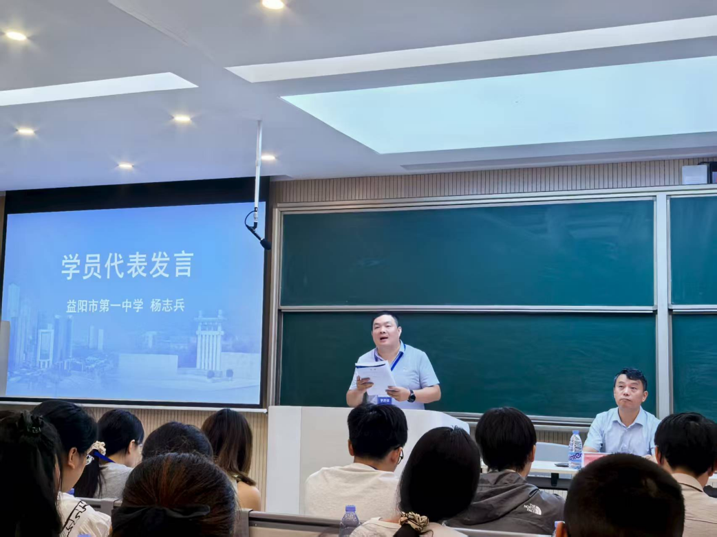来自益阳市一中的杨志兵代表全体参训学员对支持此次培训的领导老师们表达了诚挚的感谢,并表示一定珍惜宝贵的学习机会,在接下来的七天时间里潜心研究,积极共创,将所学所研带回课堂,赋能益阳数学竞赛公司产品的提高和创新,为益阳市基础教育高质量发展贡献力量。