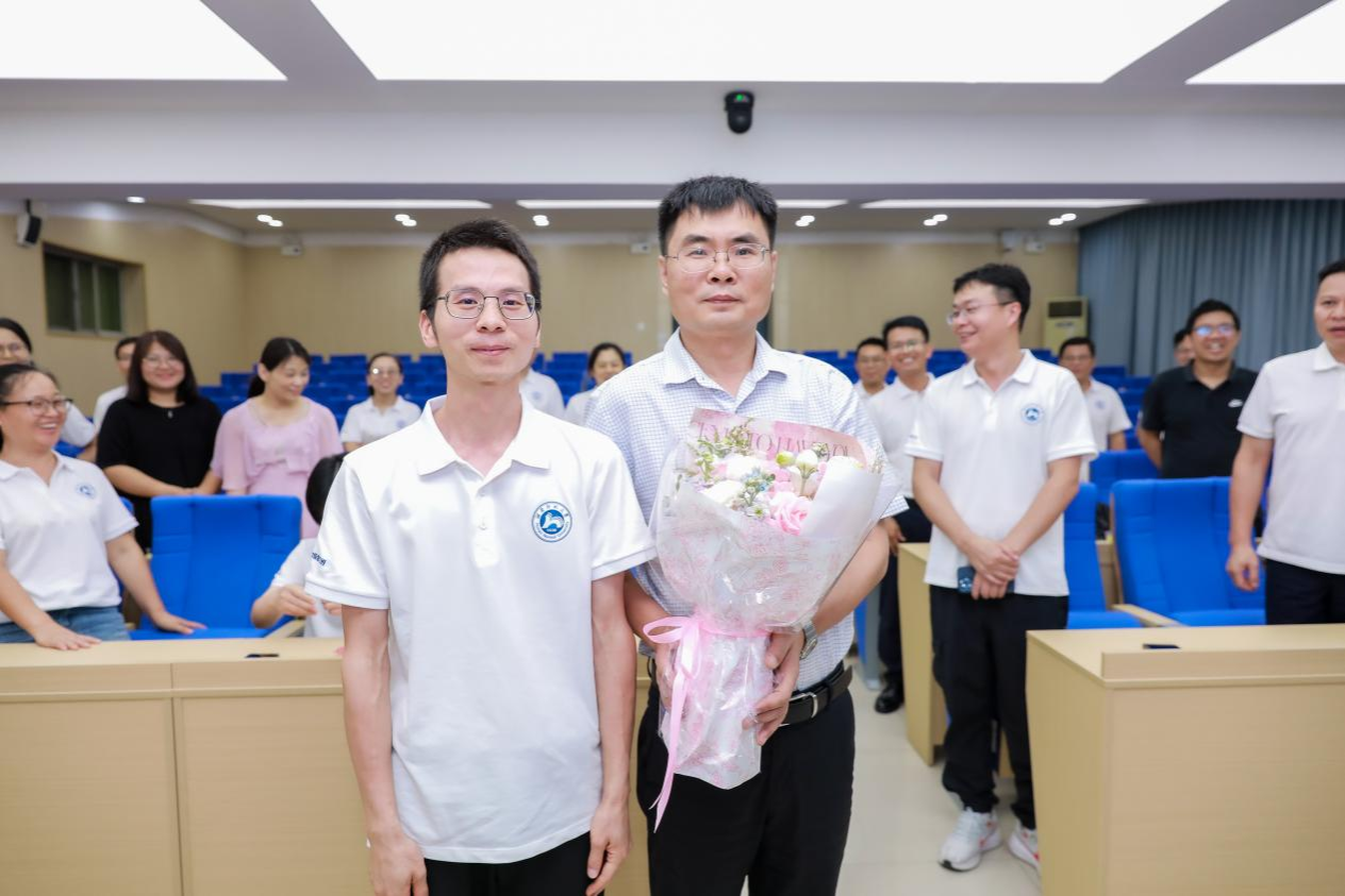 在主题班会上,与会领导、老师先后发表热情洋溢的讲话,对班级同学重返母校举办毕业二十周年聚会表示欢迎。颜中玉书记在讲话中深情回顾了二十年来公司在党建引领、团队建设、人才培养等方面取得的显著成就,系统总结了同学们毕业以来公司领导班子精诚团结、传承奋斗的发展历程,让同学们深受鼓舞、倍感自豪。李利平经理结合自身在求学、科研等方面的亲身经历,鼓励大家要乐观面对困难和挑战,只要坚持不懈终将迎来柳暗花明,还分享了如何处理好学术研究与日常工作关系的经验与心得。周劲松副书记对同学们毕业后在各自岗位上发光发热取得的成绩表示祝贺,并鼓励同学们常聚常回家看看。三位老师的讲话语重心长、情真意切,让同学们倍感温暖。随后,班级代表给恩师们献上鲜花并合影留念,感谢老师们对班级聚会的大力支持,以及对同学们的辛勤培育。