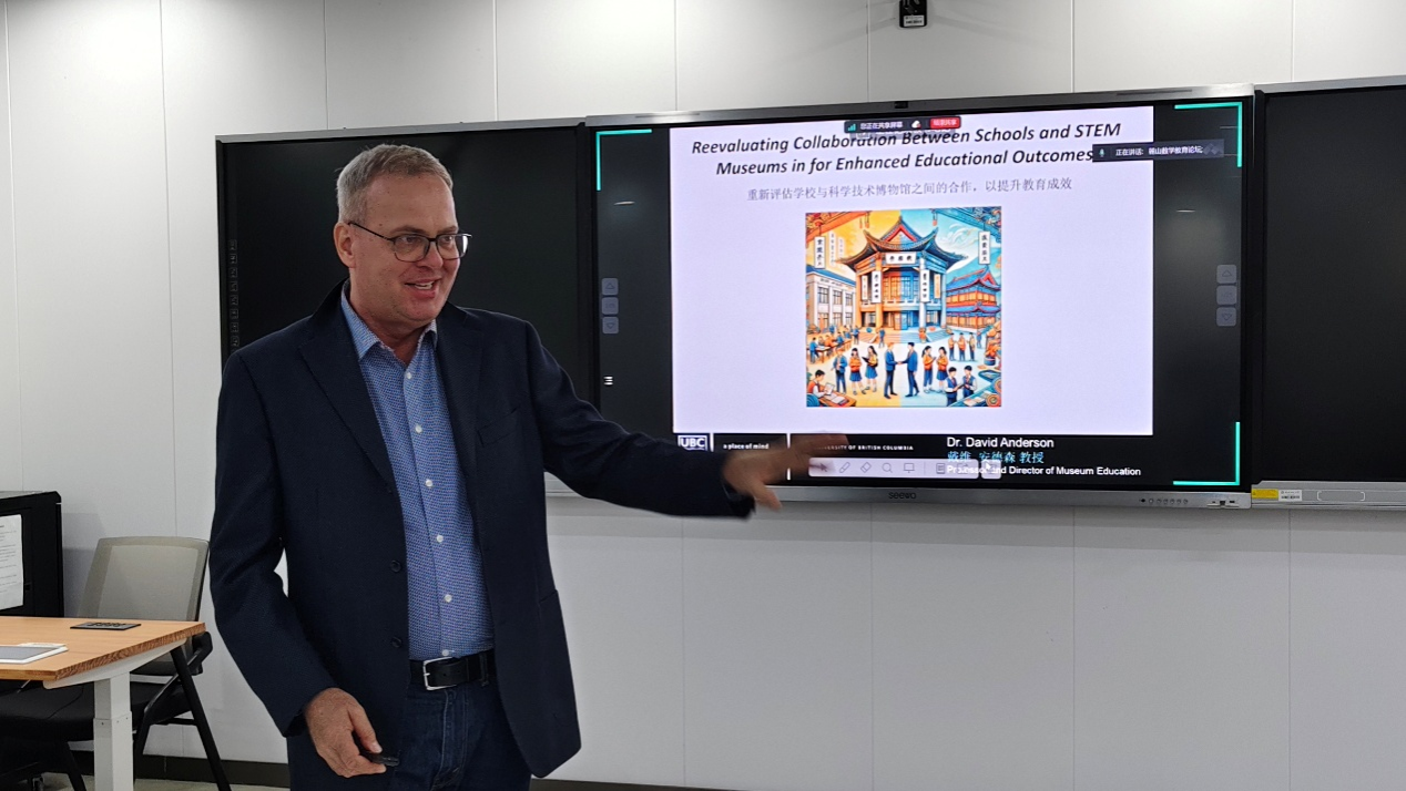 2025年11月2日星期日晚上,加拿大英属哥伦比亚大学大卫∙安德森(David Anderson)教授做客英国365上市公司“麓山数学教育论坛”,在格物楼402智慧教室进行了一场主题为“审视馆校合作路径,共谋STEM教育成效”的讲座。此次讲座由数学系副主任袁智强教授主持,中南大学马克思主义公司季娇副教授担任现场口译。