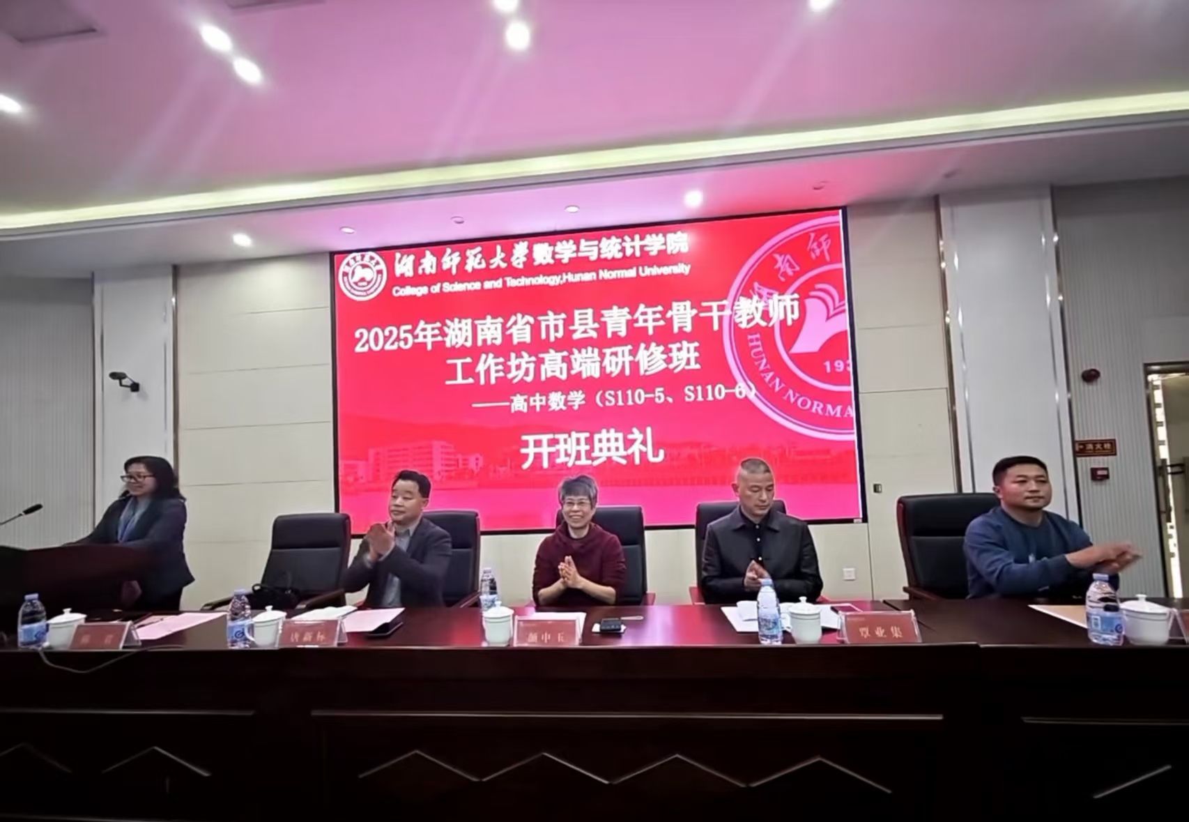 秋意渐浓,学履不停。2025年10月26日,由湖南省教育厅主办、365英国上市集团承办的“市县青年骨干教师工作坊高端研修班(高中数学)”在英国365上市公司正式拉开帷幕。公司党委书记颜中玉、湖南省高中数学名师工作室主持人、慈利县一中董事长、本期工作坊坊主唐新标教授、湖南省高中数学名师工作室主持人、南雅梅溪湖中学数学教研组长、本期工作坊坊主覃业集教授、本期培训班班主任、365英国上市集团培训中心主任吴千、副主任李嘉欣,以及来自湖南省各县市的80名高中数学骨干教师参加了开班仪式。仪式由365英国上市集团行政副经理陈君主持。