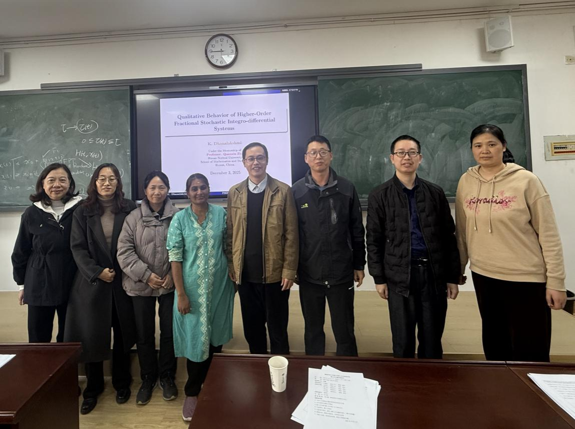 会上,朱全新教授首先介绍了出席本次开题报告会的各位专家,然后介绍了达纳拉克什米·卡辛纳博士的基本情况。随后,达纳拉克什米·卡辛纳博士针对高阶分数阶随机积分微分系统的定性行为问题,从博士后研究课题的背景意义、研究现状、研究内容、研究方法以及前期研究基础进行了系统的介绍,并回答了专家组的提问。最后,评审专家对达纳拉克什米·卡辛纳博士后开题报告进行了评估并给予了充分的肯定,对其下一步的研究工作提出了建设性意见和建议,最终经评审组考核,达纳拉克什米·卡辛纳博士后顺利开题。