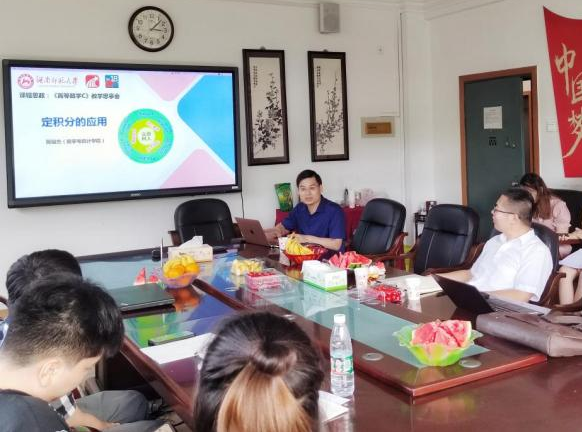 蒋培杰博士向大家展示了《高等数学C》“定积分的应用”的精彩课堂设计与流程。他以医员工为何要学习数学为切入点,采用“线上线下结合”互动的教学方式,利用智慧平台、动画技术和拓展阅读材料,生动形象地将数学与现实结合,顺利开展课程思政。