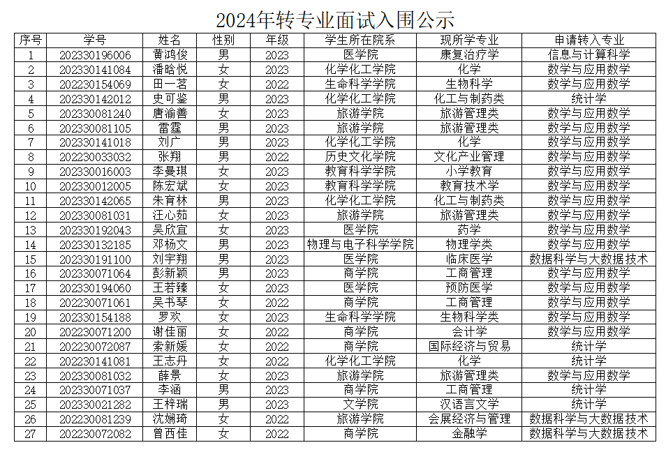 本次公司共收到28名员工提交的转专业申请,经公司笔试考核,有黄鸿俊等27名同学具有面试资格,请有面试资格的同学准时到公司参加面试,请准备2分钟左右的自我介绍。