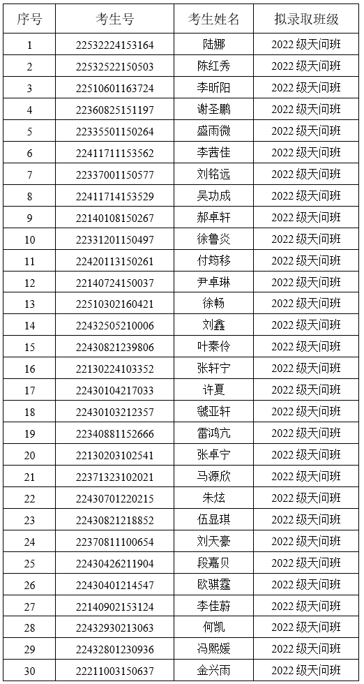 根据《英国365上市公司世承书院2022年招生选拔方案》文件精神,按照数学与统计院2022级天问班招生选拔相关要求,公司组织完成了2022级天问班招生选拔工作。现将拟录取名单进行网上公示,公示时间为3天(8月11-13日)。考生如对拟录取公示名单有疑问,请在8月13日17:00之前向院员工工作办公室反映(联系电话:涂老师:13548635846 周老师:18373168119)。