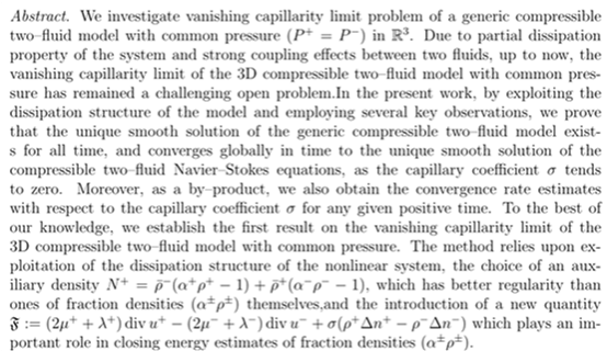 报告题目:Vanishing capillarity limit of a generic compressible two--fluid model with common pressure